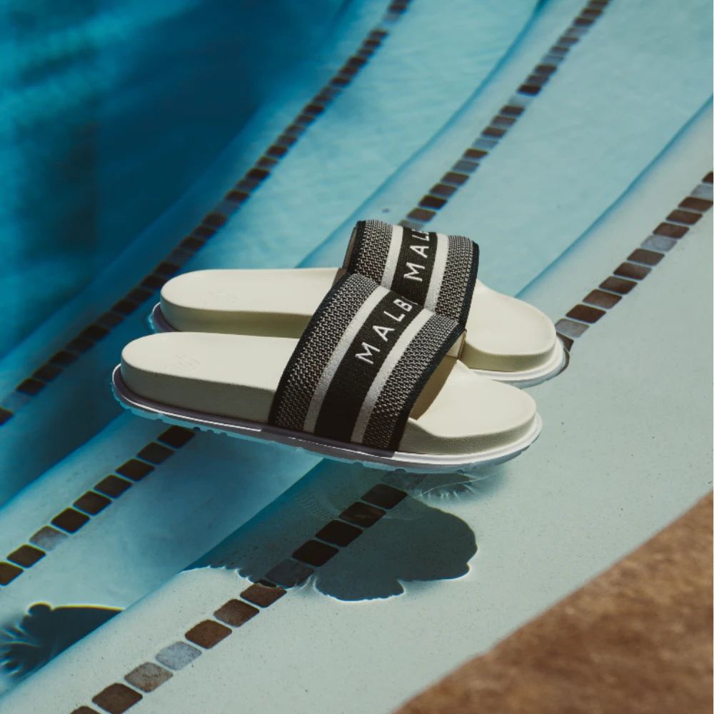 The Malbon Resort Slide, an essential part of your post game recovery. The Resort Slide features a knit fabric upper with a soft PU footbed and EVA outsole for ultimate comfort and durability.